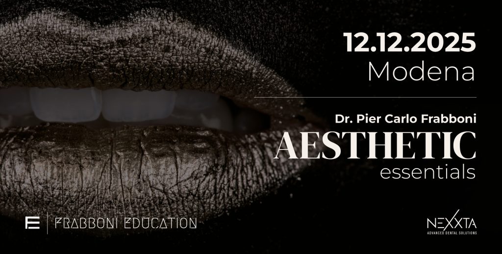 AESTHETIC ESSENTIALS Corso base di progettazione estetica del sorriso, fotografia e videografia, previsualizzazione del design dentale (Mock-up). Dr. Pier Carlo Frabboni Corso teorico-pratico dedicato agli odontoiatri. Previsti coffee-breaks – pranzo libero. SEDE | DATA | ORA Nexxta ModenaViale dell’Indipendenza 5, 41122, Modena Venerdì 12/12/2025dalle ore 9:00 alle ore 18:00 ABSTRACT Oggigiorno è […]
