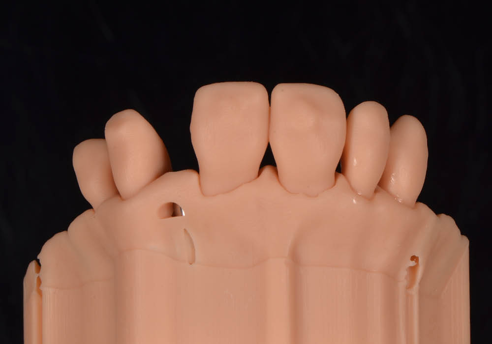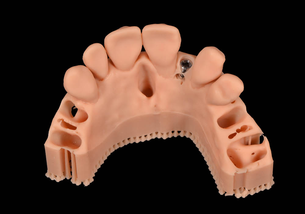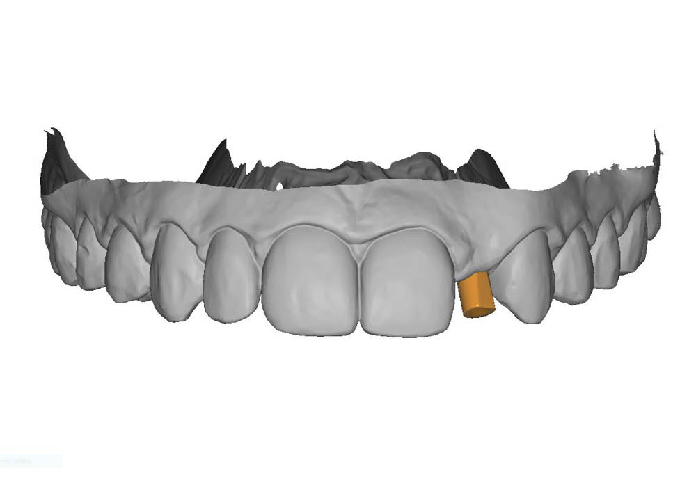 Su misura per la paziente, è stato realizzato un tappo di guarigione anatomico in PEEK, progettato per guidare correttamente la guarigione dei tessuti molli e mantenere il profilo di emergenza ideale in funzione del futuro restauro.