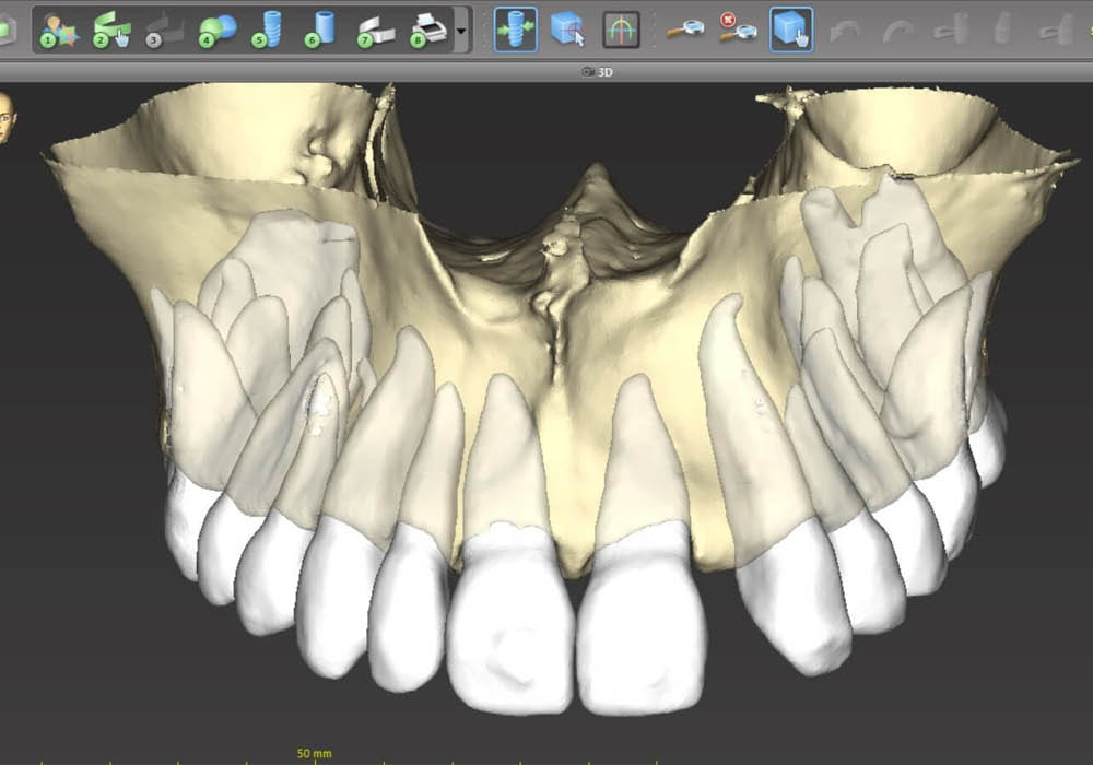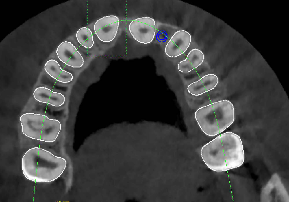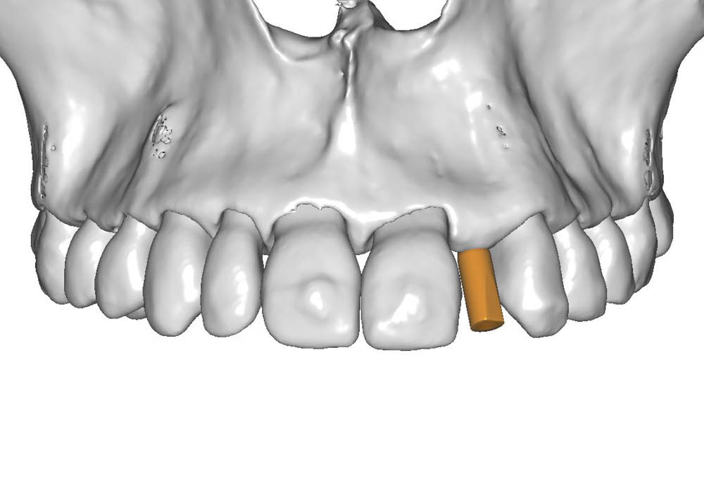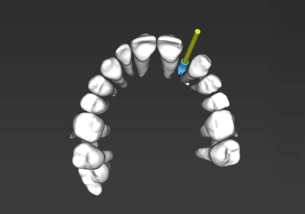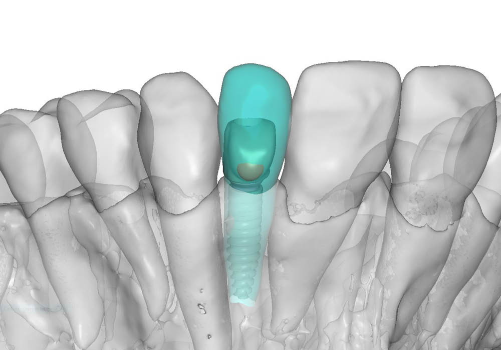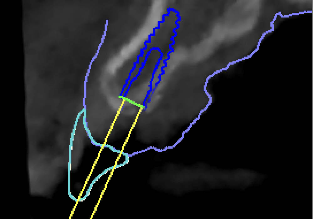 L’obiettivo era quello di definire con precisione posizione, profondità e inclinazione dell’impianto, tenendo conto della vicinanza delle radici adiacenti e della necessità di preservare un adeguato spessore vestibolare.